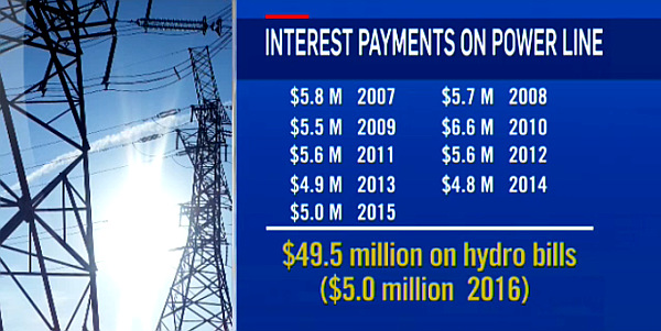 “Since 2007, Hydro One has had permission from the provincial government to bill taxpayers for its interest payments on the $100-million capital cost to build the powerline. To date, taxpayers have paid nearly $50 million in interest alone, for a powerline that has never transmitted any electricity.