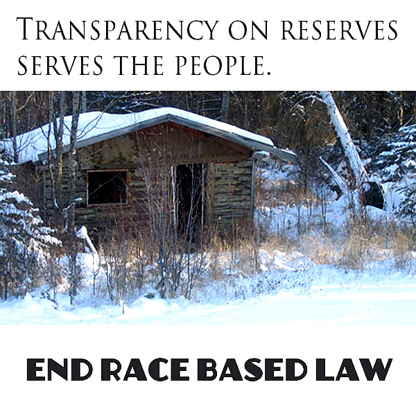 “As Leona Freed pointed out, our leaders only communicate among themselves, and other politicians, completely omitting the people! The majority of Reserve residents had no say in the implementation of C-31, Land Claims, Reconciliation Deals, etc., which are highly detrimental to the people and to Canada; yet, we don’t see those Acts being dissolved! There’s a whole lot of legislation put into place without the vote of the Canadian people, including the Constitution, which has proven to be highly detrimental to the stability of Canada. If the Transparency and Accountability Act can be dissolved so easily — even though it was beneficial to Reserve residents and Canadian Taxpayers, to try to keep the leaders honest, and to save Canada some money — then our politicians could cancel all the destructive legislation that has turned out to cause strong lines of division between races, negative impacts on the country’s stability, or have taken a heavy financial toll on Government coffers!
