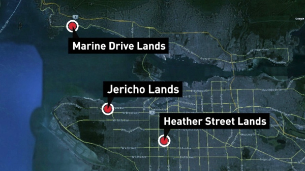 “The approximately 32 hectares of land were previously owned by the federal government and include {part of} the Jericho Lands (21 hectares), where a Canadian Forces garrison is currently sited, an area west of Heather Street between West 33rd and West 37th Avenues (nine hectares) that was formerly an RCMP headquarters, and a small parcel of land (two hectares) on Marine Drive at Burkehill Road in West Vancouver that was formerly owned by ‘Fisheries and Oceans Canada’.
