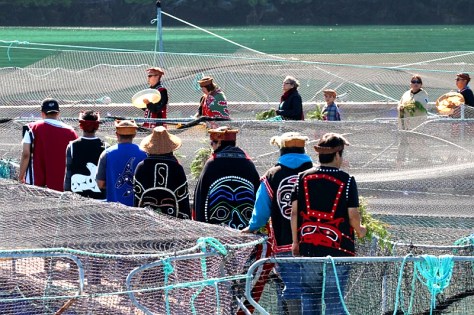 “With chiefs in traditional robes, drumming and singing, the group ignored efforts by Cermaq employees to prevent them from {illegally} landing, handed over the notice and then held a cleansing ceremony and wild salmon barbecue at one of the farms.