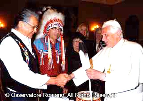 “Pope Benedict XVI expressed his “sorrow” to a delegation from Canada’s Assembly of ‘First Nations’ back in 2009 over the abuse and “deplorable” treatment that {some} Aboriginal students suffered at residential schools run by the Church {See below}.