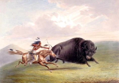 Another favored hunting tactic, the “buffalo jump“, involved luring a herd after an Indian dressed in a buffalo skin. At a full run, the brave led the herd to a cliff, where he leapt to a small ledge while the buffalo careened over the edge to their deaths. Either of these methods led to horrible waste and inefficient use of resources.