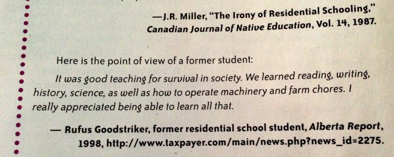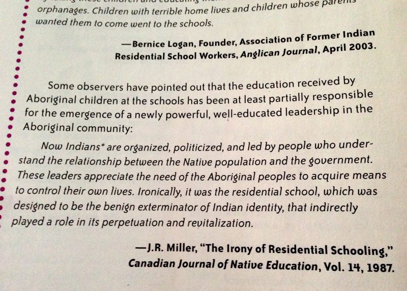 “On reflection, it is a mistake to treat the residential school experience monolithically—to suggest it was essentially the same for everyone, at every school, down through the years. Both the ‘Truth’ and ‘Reconciliation’ Commission’s report and this book make that mistake.