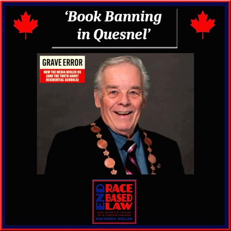 “Councillors in Quesnel, B.C., voted unanimously to censure their Mayor, saying his actions related to a book that denies the harms of Canada’s residential school system {which it doesn’t} have jeopardized the city’s relationship with ‘Indigenous’ {sic, Aboriginal} communities.
